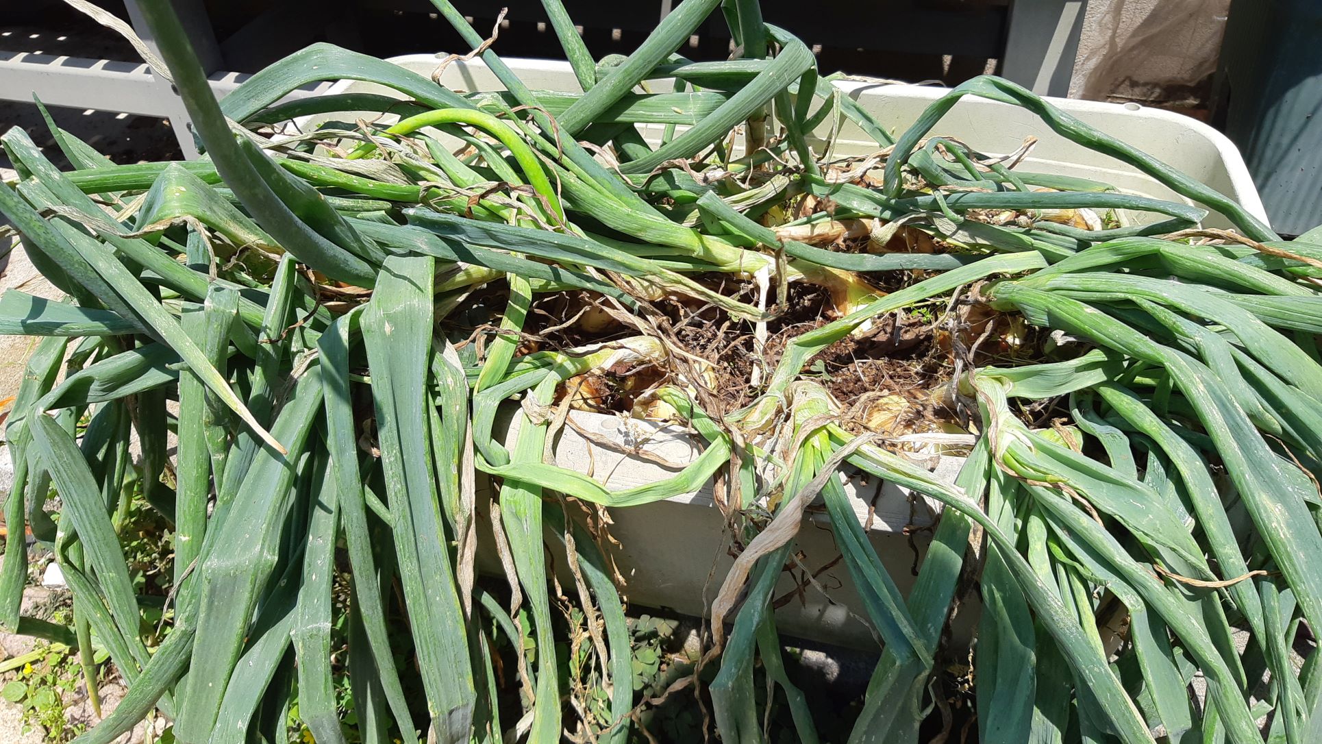 早生のタマネギは早くも葉が倒伏したので収穫しました。(品種はフォーカスとジェットボール)