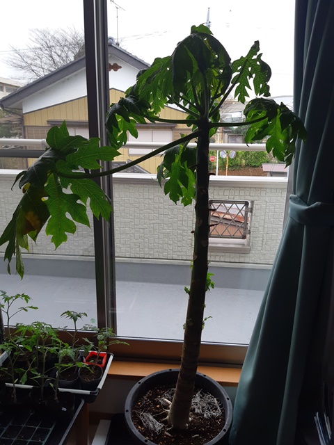 このパパイン酵素は青パパイヤに沢山含まれていて熟すほど少なくなってしまうので、青パパイヤまで大きくなれば家庭菜園でも栽培する価値はありそうです。