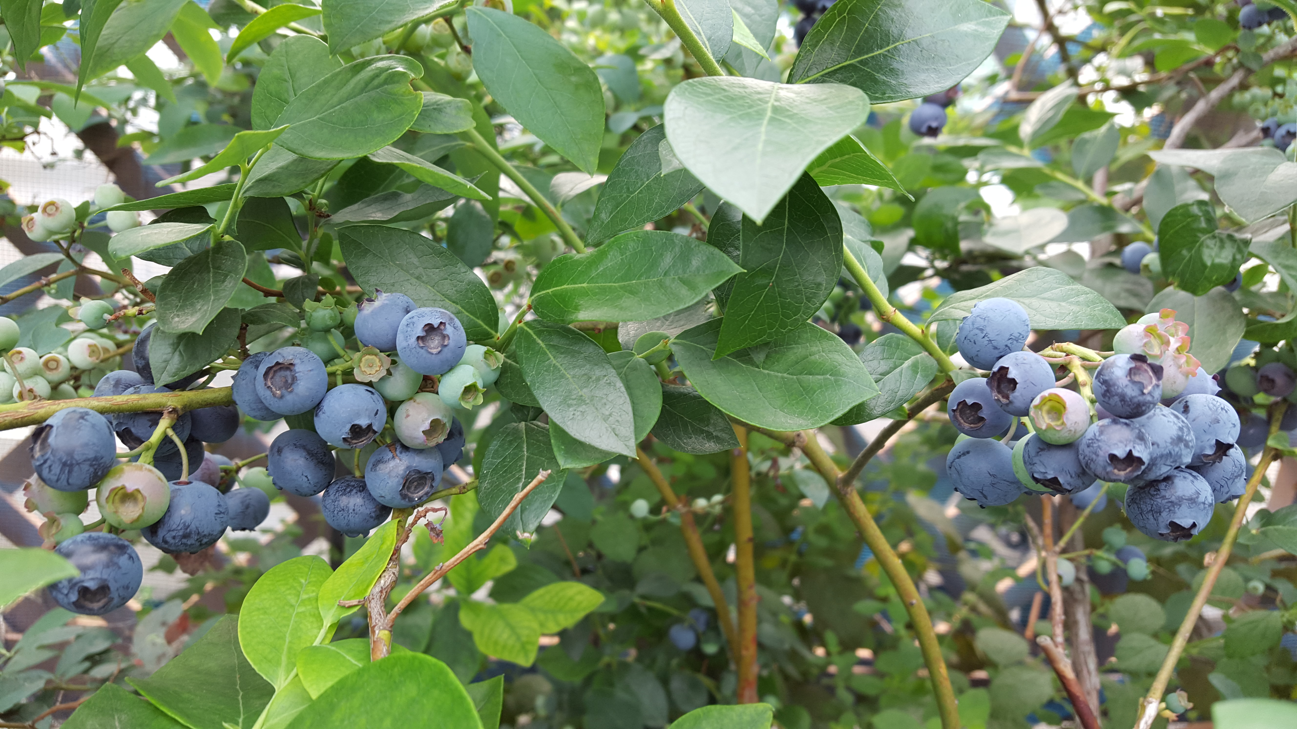 コンテナ栽培のティフブルー。何年もこのままですが通気性がいいのか毎年沢山の実をつけてくれます。