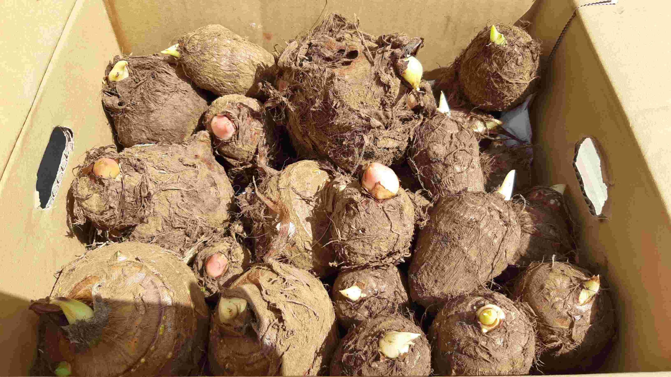 段ボールにいれて家の中で保存しておいたところ芽がではじめました。
