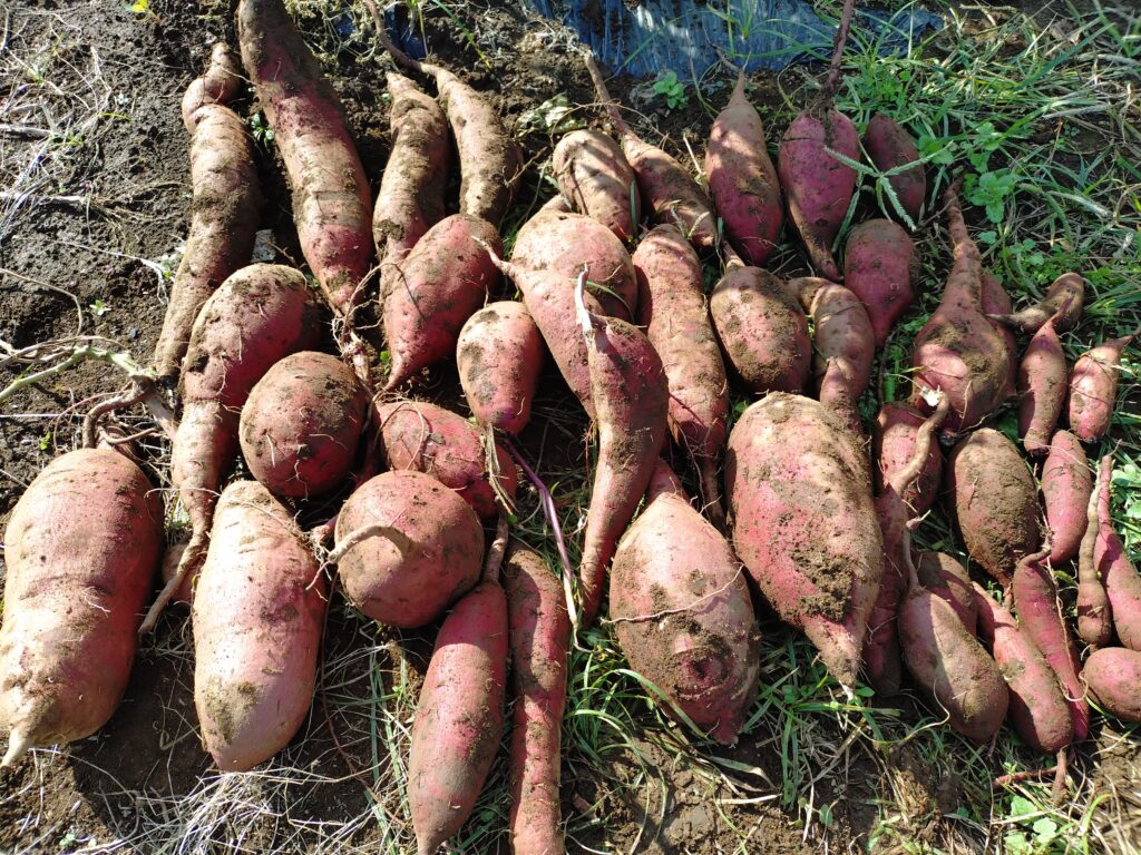 サツマイモ シルクスイートの収穫 2025/11/13 サツマイモ サツマイモのシルクスイートを収穫しました。 焼き芋には大きすぎるイモが多かった。 GW頃植えたのでもう少し早めの収穫の方がよかったかもしれない。 しばらく貯蔵して甘みが増してから食べます。 それでは