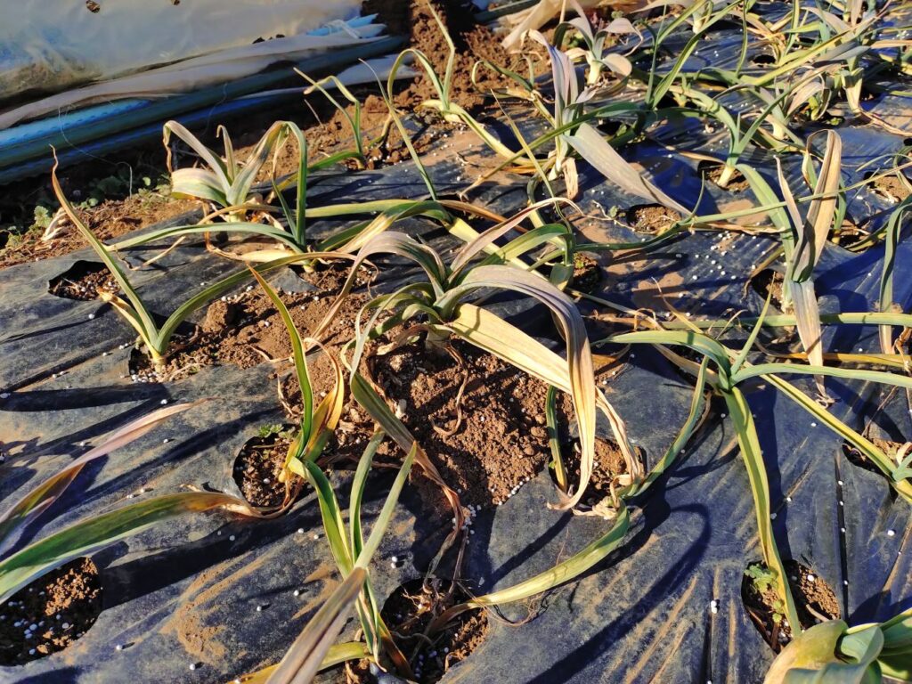 ついでにニンニクも雑草も抜いて追肥をやっておきました。