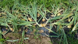 タマネギ タマネギの収穫|2本植え栽培の収穫量比較