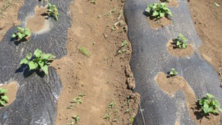 関東地方も梅雨入りしましたが、まとまった雨はまだ降ってないです。さて、小玉スイカですが敷きわらのかわりに「わらイラズ」を敷いています。敷きわらの代わりになり、シルバーなので害虫の忌避効果があります。また、スイカが地面に直接ふれないので腐りに...