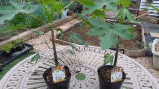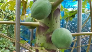 今年の夏、我家を楽しませてくれたパパイヤ(品種:ハワイオウロ)ですが、朝晩の冷え込みが厳しくなってきたので、枯れる前に収穫しました。思い切って伐採!大きめのもので400gくらいでした。早速豚の焼肉と青パパイヤの炒め物でいただきました。特にパ...