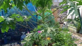 パパイア 【家庭菜園】庭で栽培中の青パパイヤを収穫 ハワイオウロ