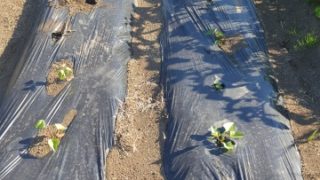 GWに植え付けたサツマイモを10日ぶりにみてきました。GW後半すごい強風の日がつづいたので少し心配でした。1列だけマルチがめくれていましたが思ったより枯れていなくて良かった。70本植えて生存率は68/70本でした。今後どうなるか分かりません...