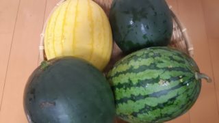 スイカ 小玉スイカの収穫 長い梅雨でとうとう枯れそう